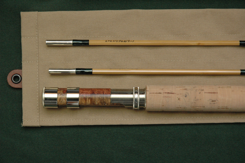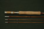 | You can completely customize your rod. You start by choosing a contemporary or classic rod taper from our rod database of over 600 rod tapers, then choose the style and size of the grip, the color of the wraps and tipping, the color of the bamboo (blond medium or dark brown), specify a swelled butt, lighten the rod via flueting, select blued or bright NS ferrules, select the type of reel seat and select from exotic burl wood inserts, specify pentagonal (5 strip) or hexagonal (6 strip) or other construction and any other custom element you can think of. Please call to discuss your rod desires and with any questions. etc. |